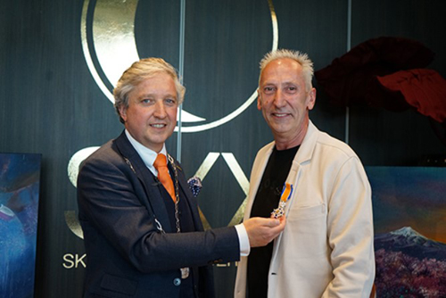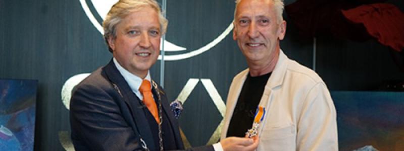 26th April 2023 DJ & Producer Johan Gielen came to the Skybar of Hotel van der Valk in Tiel because there was an exhibition there, in honor of his 30th anniversary, Art Meets Music - “30 Years Johan Gielen art collection” by Ton van Geelen , was opened. To his great surprise, Mayor Beenakker walked in to award him a Knight in the Order of Orange-Nassau.