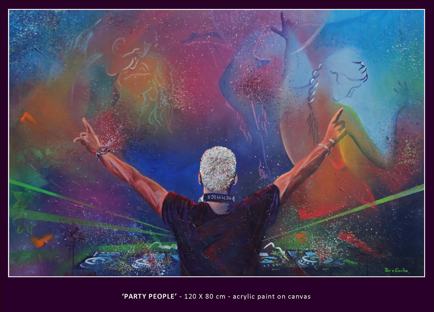 At that particular moment in March 1993, Inspiration of Dance was born. After a lengthy fermentation process, an invitation from ID&T and the meeting with DJ Johan Gielen in 2000, I was able to make the right artistic translation and work out the idea. 'Inspiration of Dance’ is a collection of paintings that revolves all facets of the dance scene. And it is still going on.