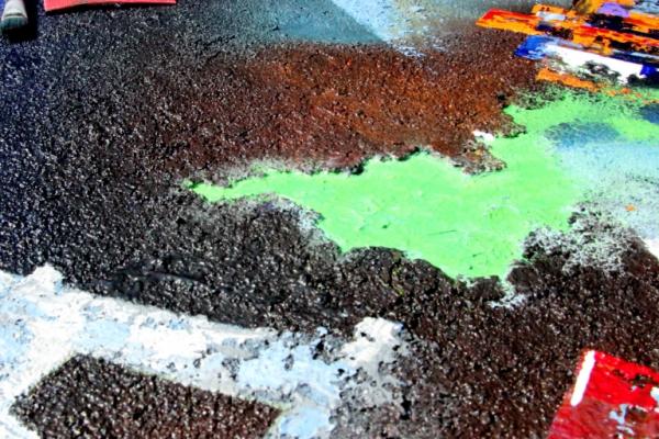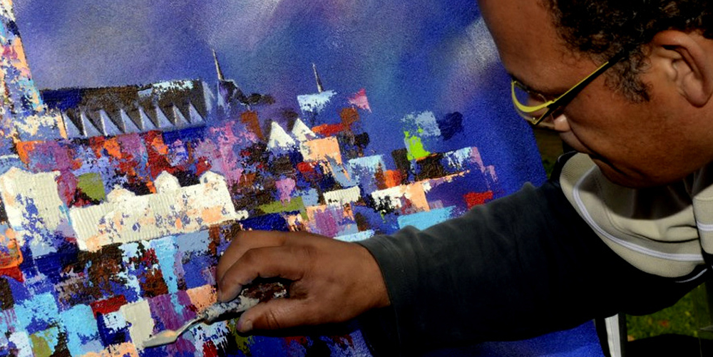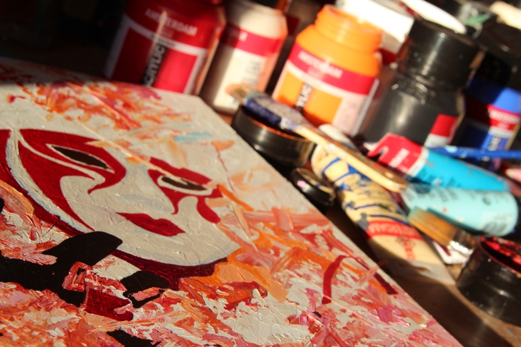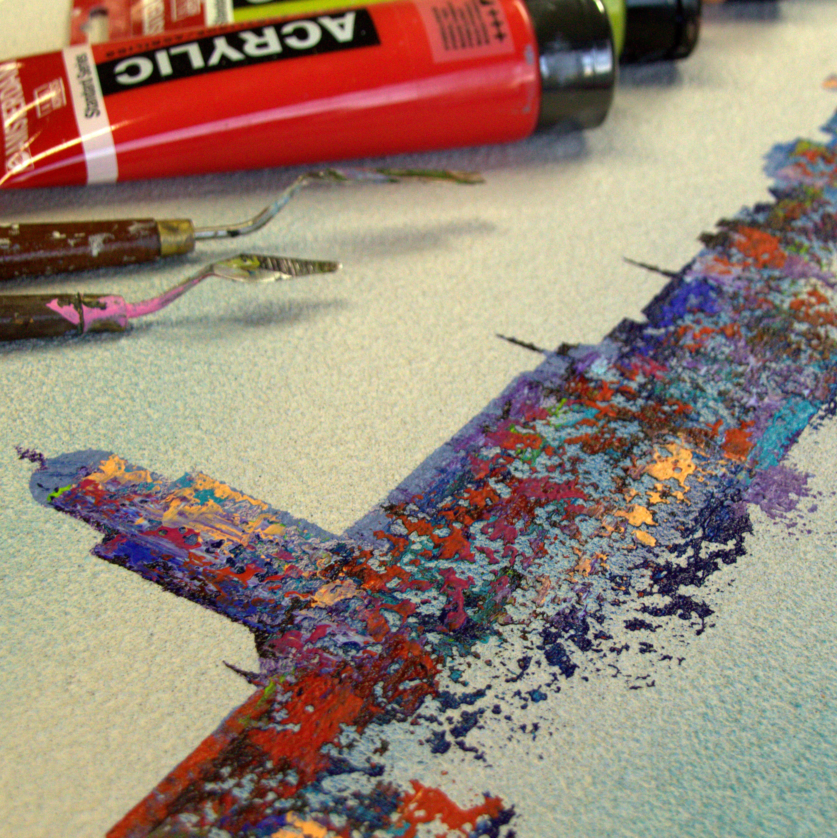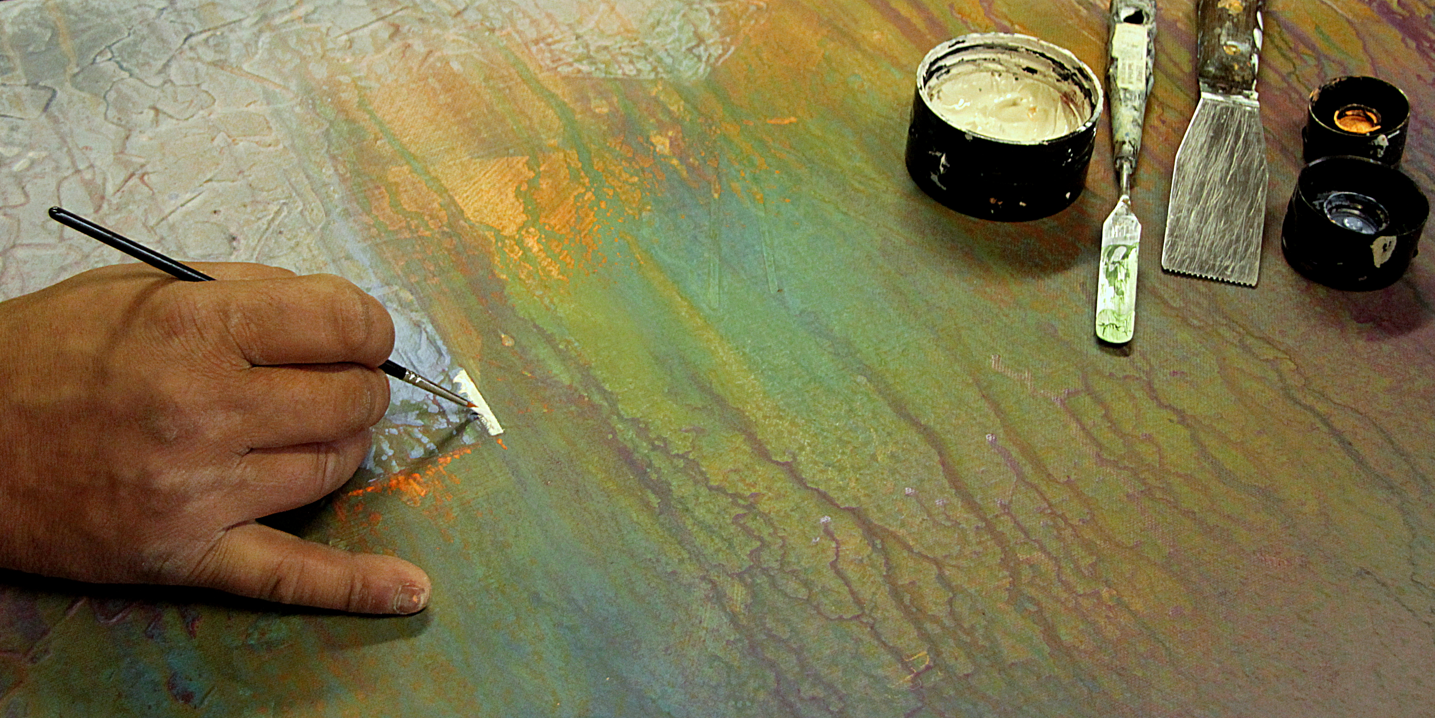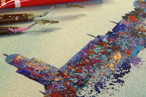 In the Freestyle technique a previous technique is the underground: the palette knife technique. The surface relief, as well as the image are mostly done with gesso and paint. Between these phases various layers of paint will be added. After the image in the painting has been processed, more than 25 transparent layers of paint are applied... sprayed or painted ... with flowing, dripping, splashing ... mostly with water.